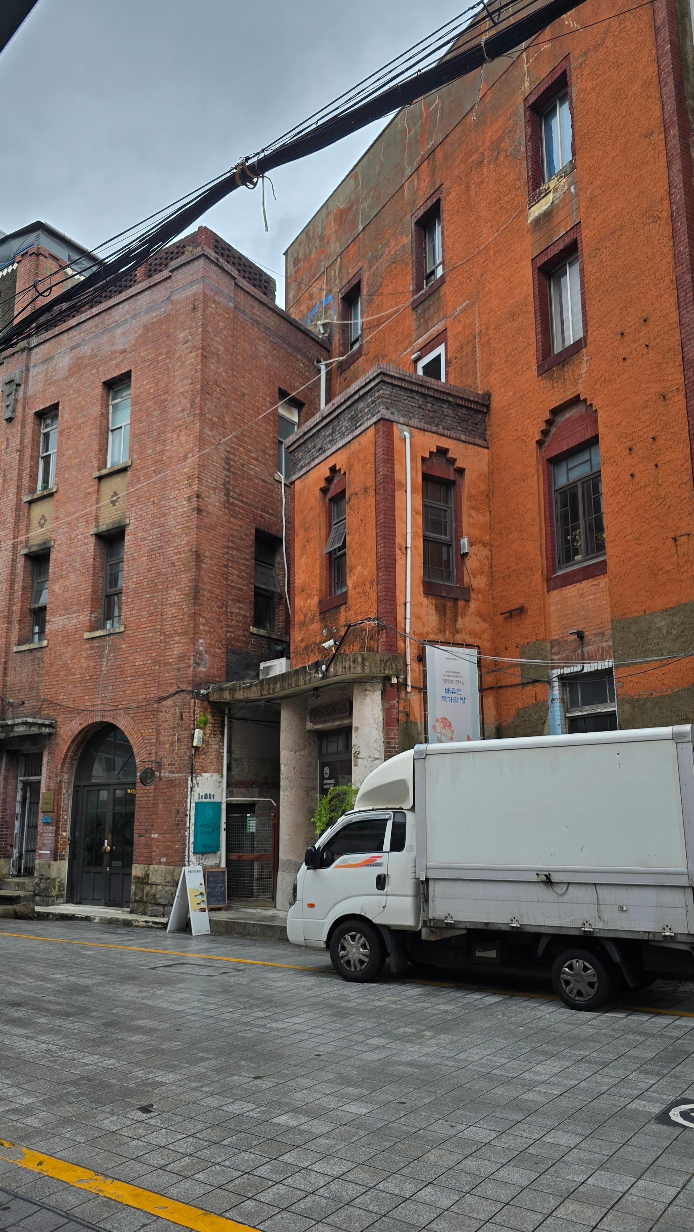 1. 시간 여행의 시작, 구 백제병원 부산역에서 길을 건너 골목으로 들어서자마자 붉은 벽돌의 **'구 백제병원'**이 보였습니다. 1927년에 지어진 부산 최초의 근대식 개인 종합병원이라고 하는데요, 지금은 카페(브라운핸즈)로 변신해 앤티크한 분위기를 자아내고 있었습니다. 벽돌 틈새마다 세월의 흔적이 느껴져 트레킹 시작 전부터 감성에 젖어들었습니다.