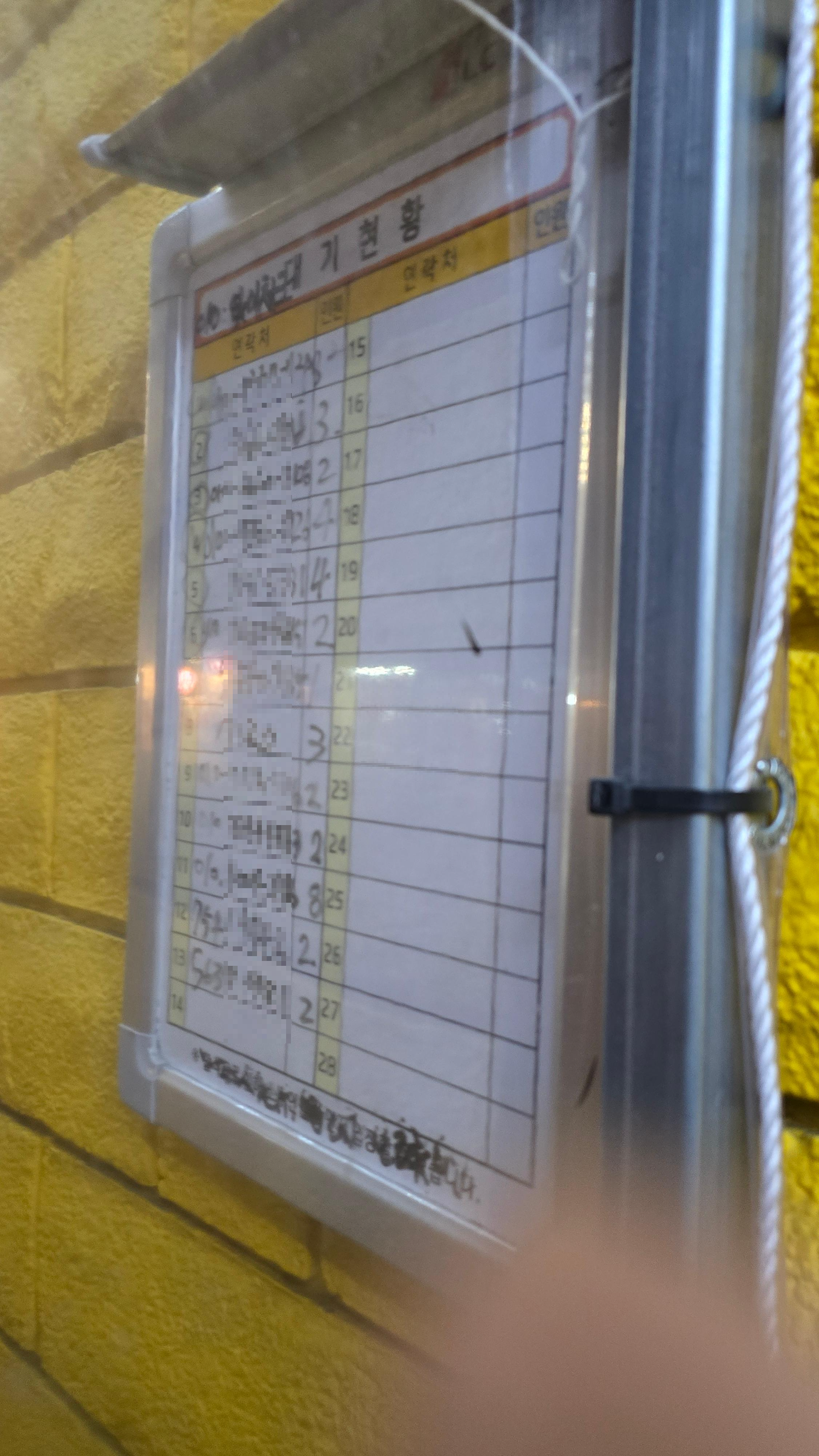 입구 화이트보드에 전화번호를 적어두면 연락이 옵니다.