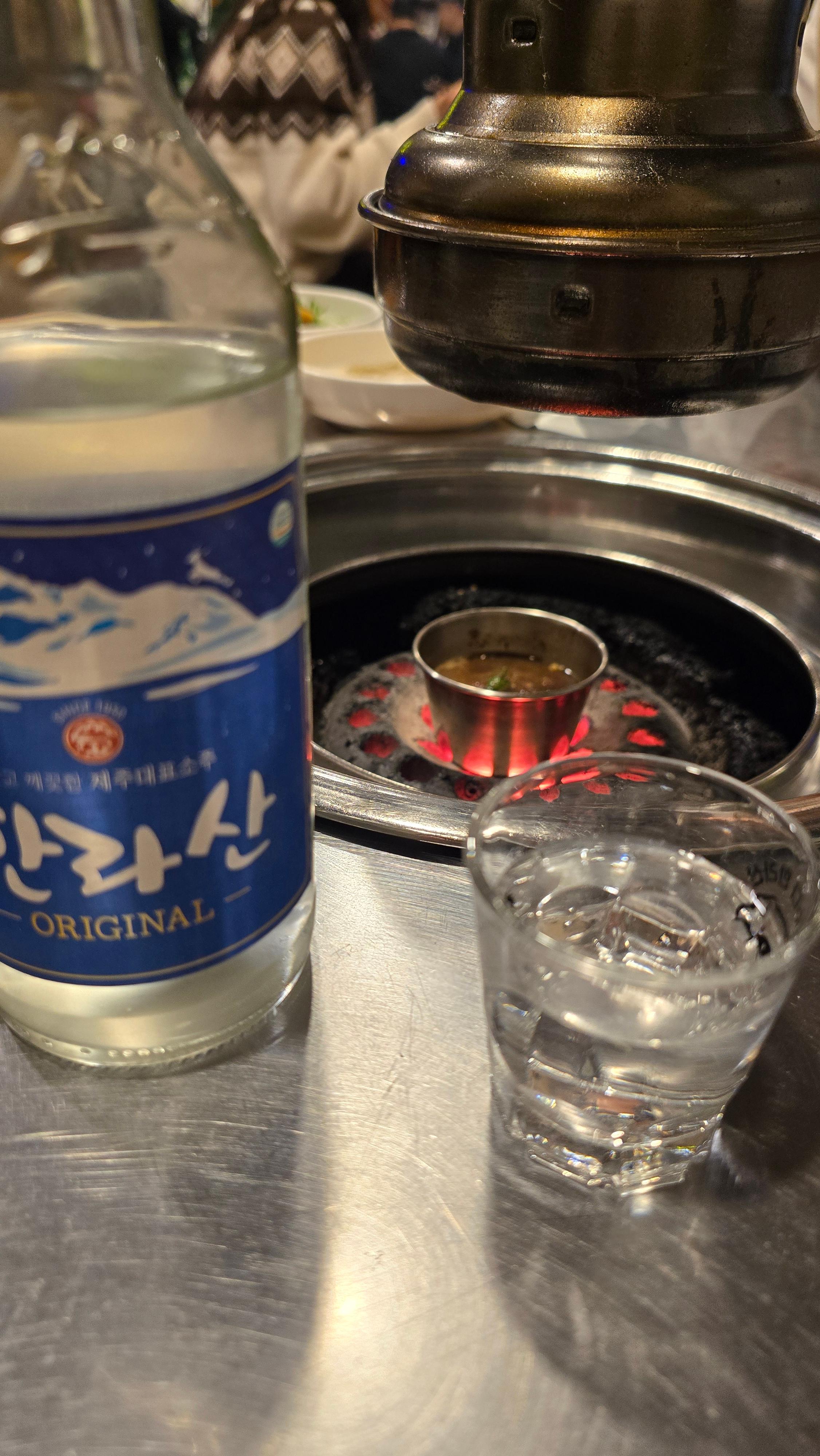 살짝 오른 흥에 한라산을 한 병 가져왔습니다.