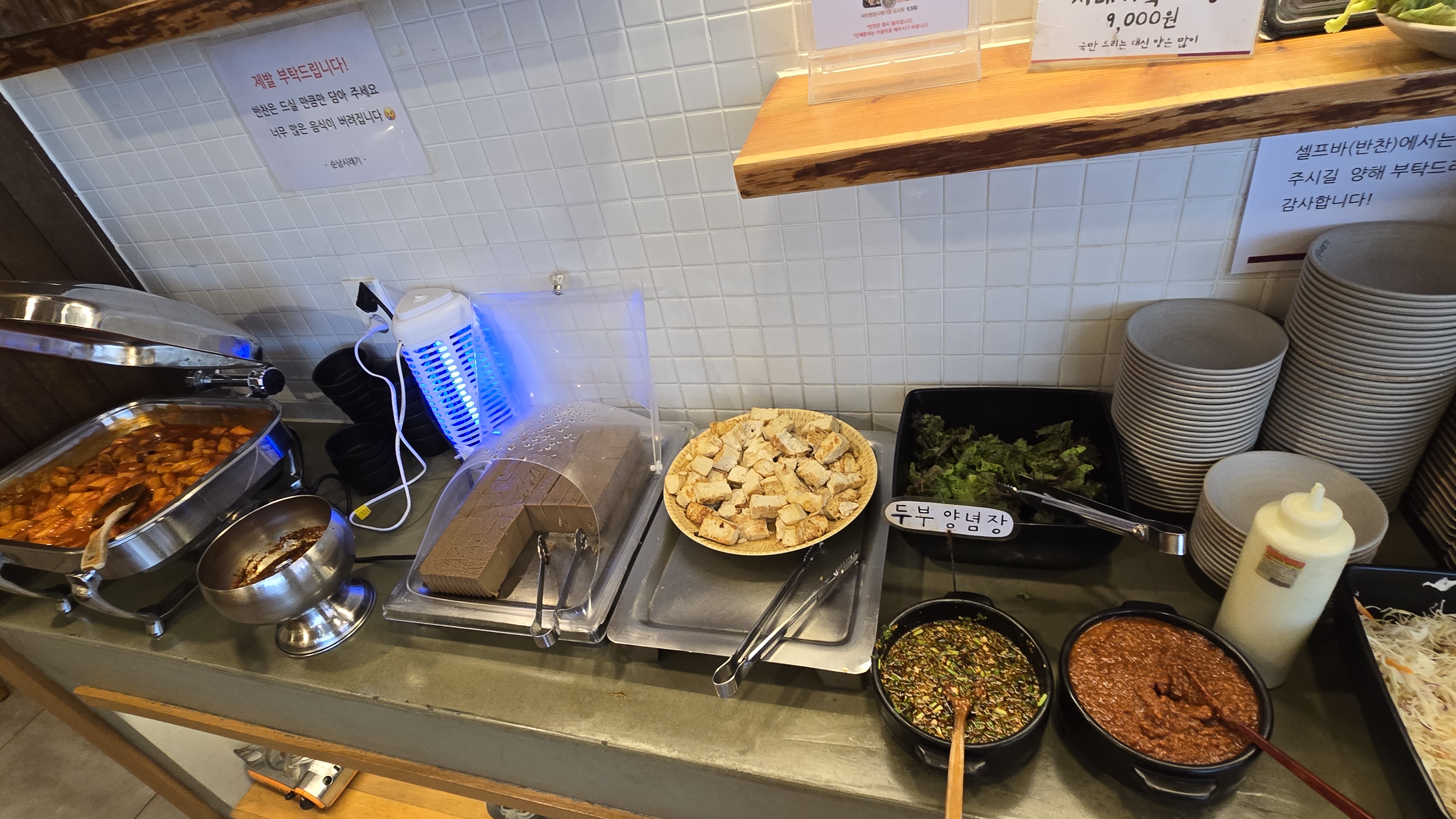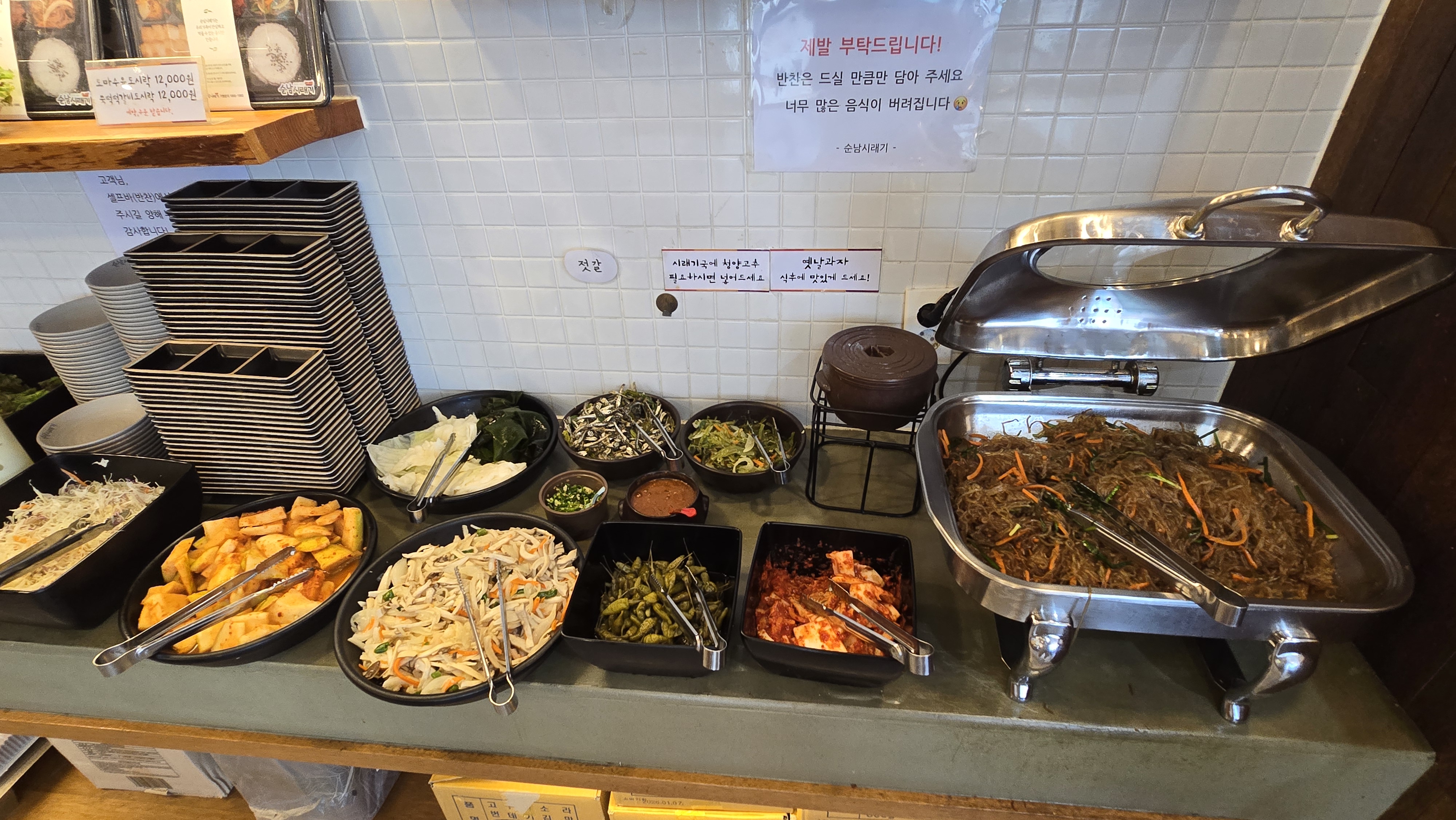 메뉴를 주문하고 반찬을 가지러 갑니다.
